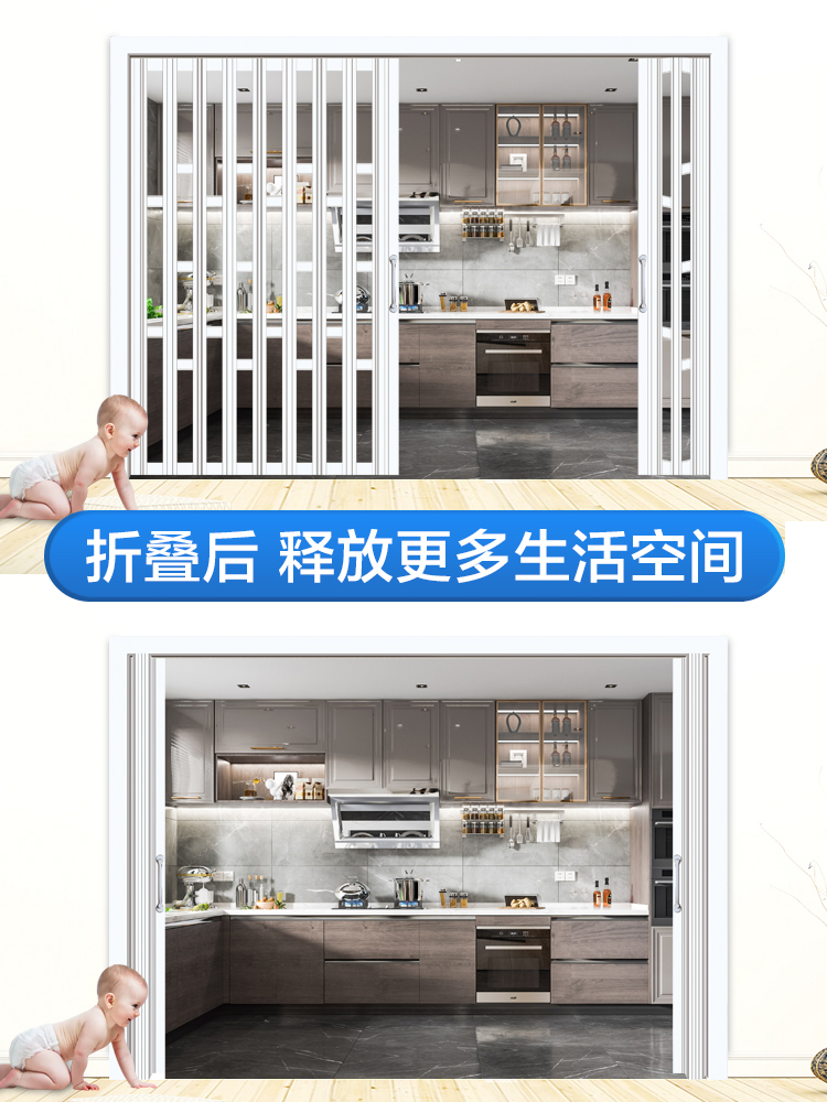 Aluminum alloy folding door Sliding door Kitchen household shop Hotel partition free drilling telescopic stealth