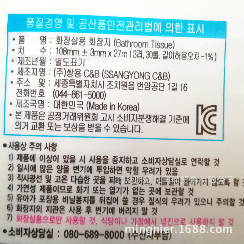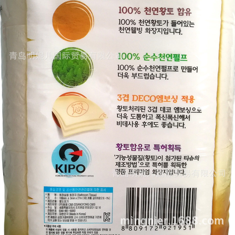 Box 135 Korea Original Import Loess Toilet Paper Pulp Print Pigment-free Makeup Room Winders Toilet Paper 30 Rolls