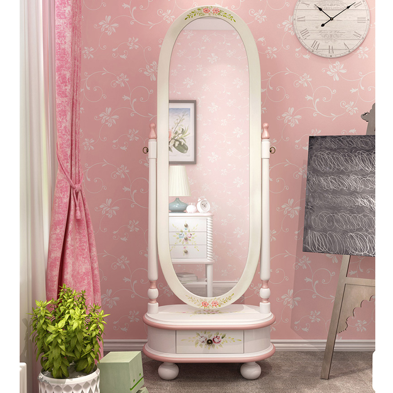 American European country painted solid wood Living room Bedroom Full-body full-body mirror Full-body mirror Floor-to-ceiling mirror Movable decorative mirror