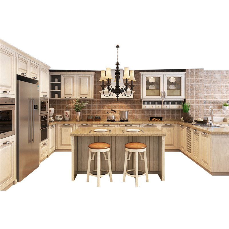 Shanghai whole house custom European-style solid wood integral whole cabinet open kitchen log custom-made quartz stone island A24