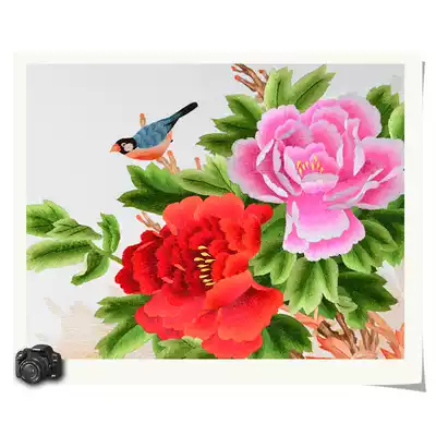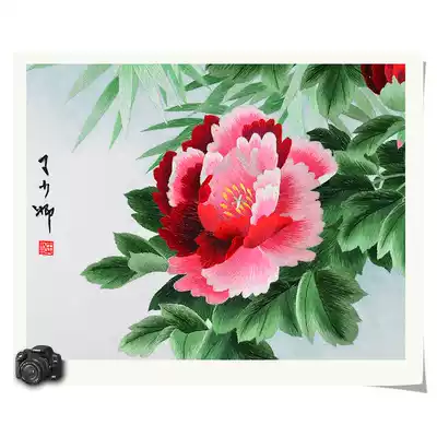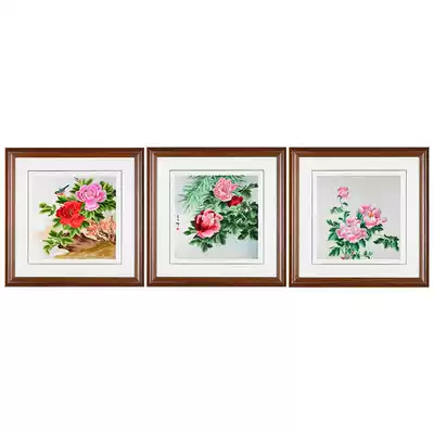 Ancient Wu female red Su embroidery finished hanging painting handmade Chinese living room entrance Suzhou embroidery decorative painting rich peony