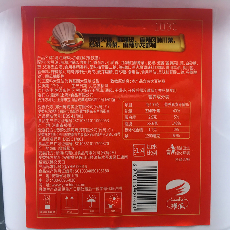 Yue Yihai clear oil spicy hot pot base material 5kg catering equipment commercial fake dishes Malatang skewers Kagawa seasoning