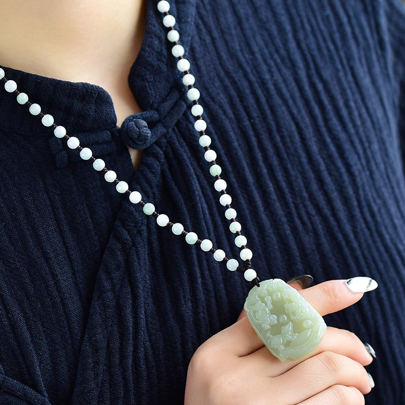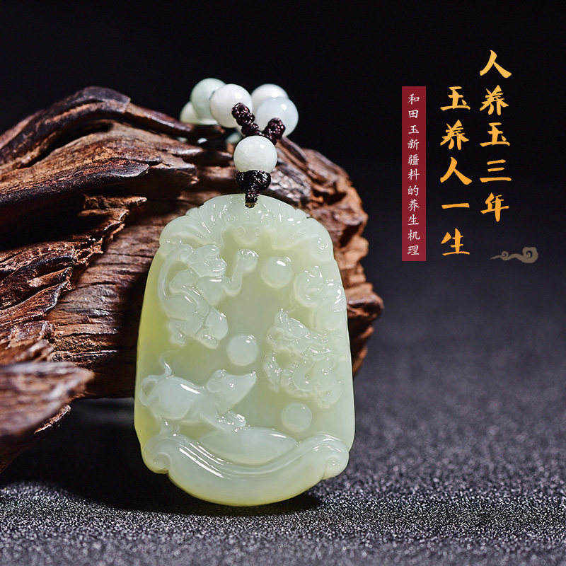 And Tian Jade (Pig Rabbit Sheep) TriHop Pendant Adjustable Emerald Beads Necklace And Tian Jade (Tiger Horse Dog) TriHop Pendant Adjustable Emerald Pearl Necklace And Tian Jade (Monkey Sage Dragon) TriHop Pendant Adjustable Emerald