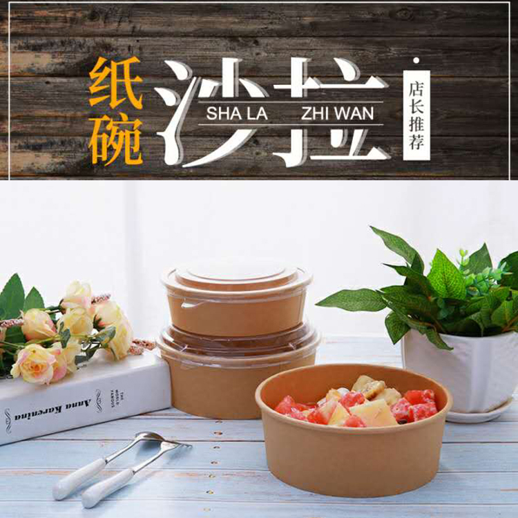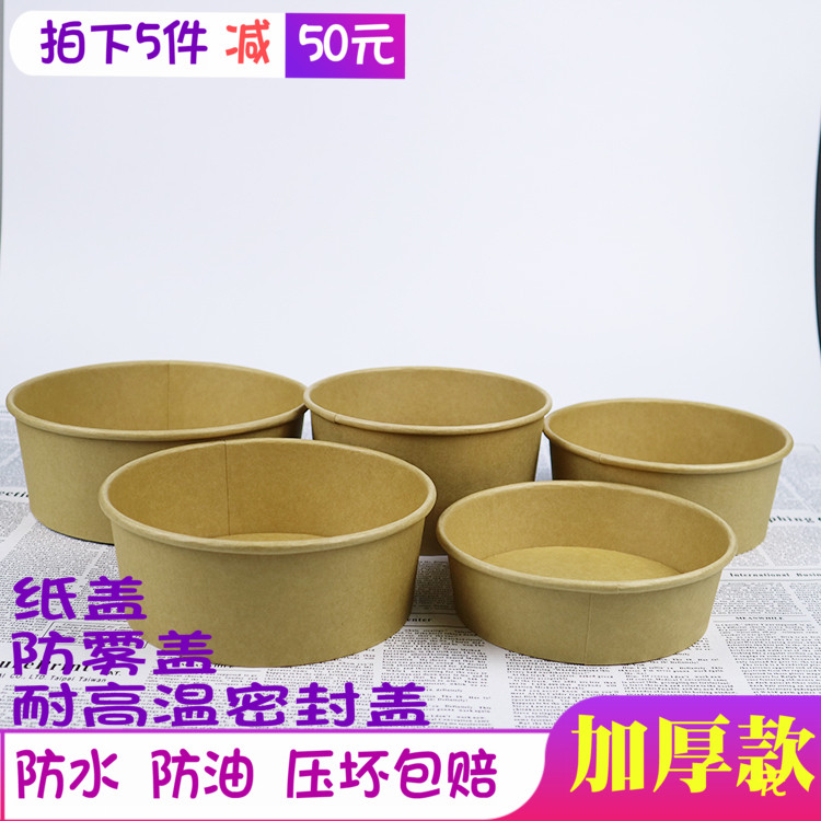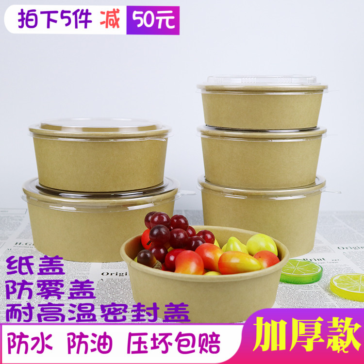 Disposable round kraft paper bowl Salad bowl Fast food salad box Takeaway fruit packed lunch box Lunch box 500 sets