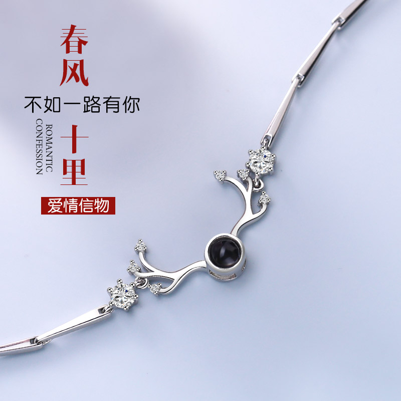 Treasure Lovers A Deer With Your Pure Silver Handmade Female Custom Lettering Projection I Love You Online Red Shake Sound Deer Corner Bracelet All The Way