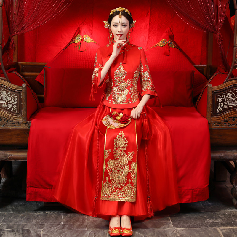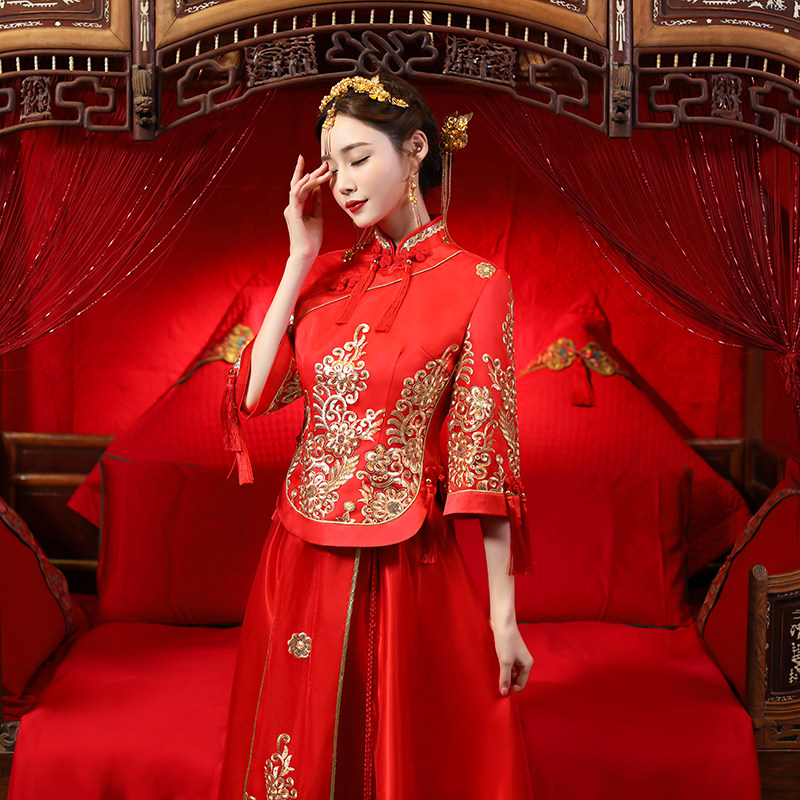 Show and dress The bride 2021 new toast in Chinese style wedding gown, ancient embroidered and kimono show