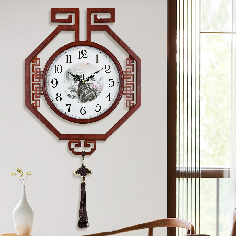New Chinese hanging bell Chinese wind minimalist decoration watches and clocks Home Living room mute creative table quartz clock Classical wood clock