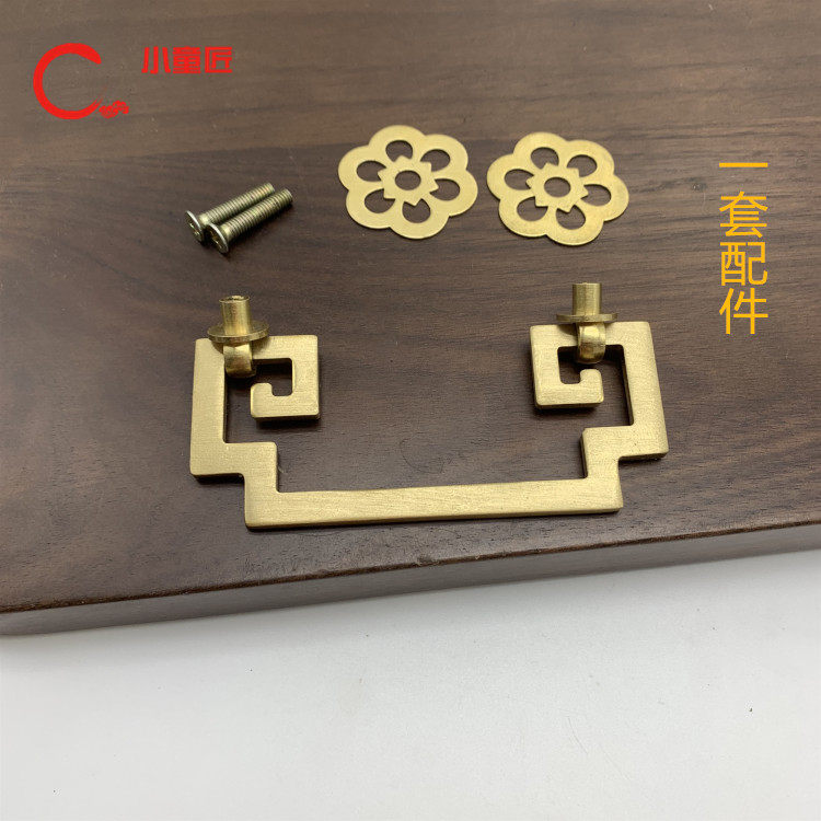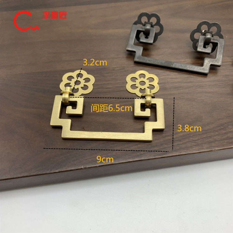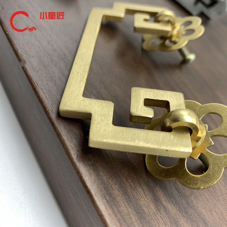 Chinese antique thicken thickened pure copper handle red wood furniture brass handle Retro back print Drawers Thickened copper handle