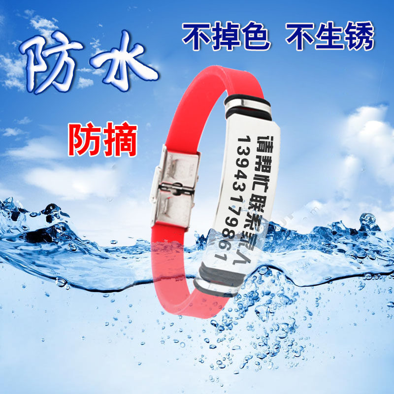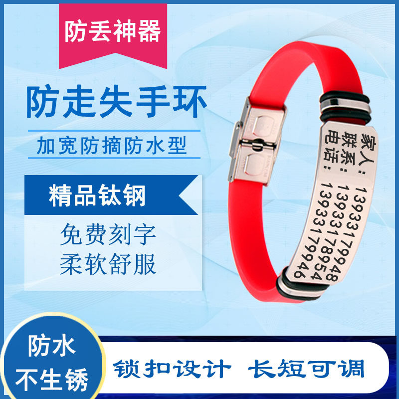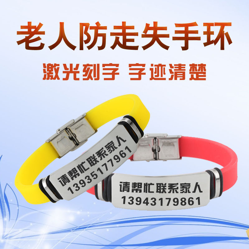 Elderly anti-lost bracelet children's Alzheimer's anti-lost identity card custom silicone titanium steel lettering anti-picking type