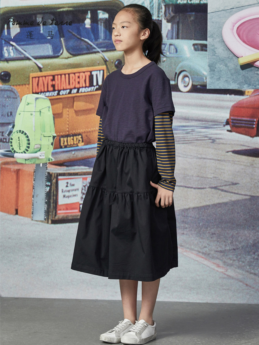 Pomme Pomma Teen Teenage Spring New Girl CUHK Scout Knee Pure Color Minimalist Waist Dress AIB400530