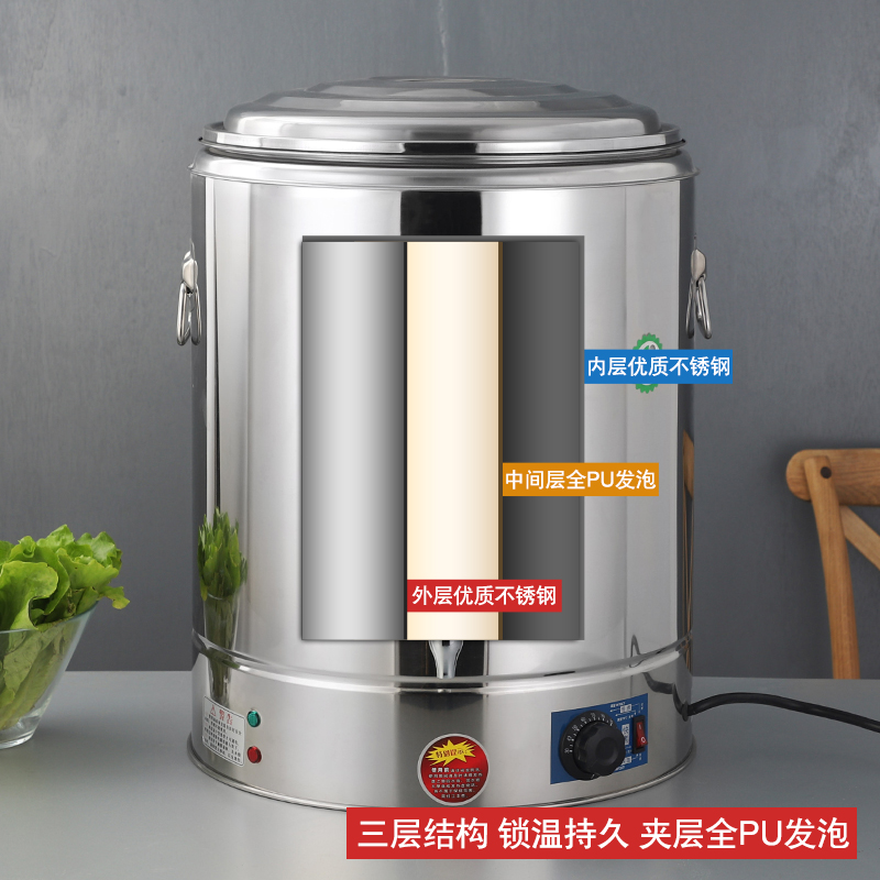 Xinqi commercial electric heating stainless steel insulation bucket double-layer large-capacity cooking bucket energy-saving soup bucket boiling water bucket cooking noodle pot