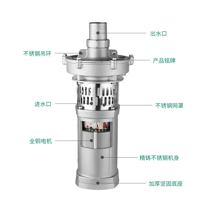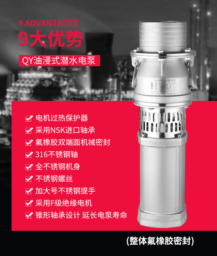 QY oil-immersed submersible pump 304 stainless steel precision casting 6 inch 8 inch large flow irrigation oil-filled high head 380V