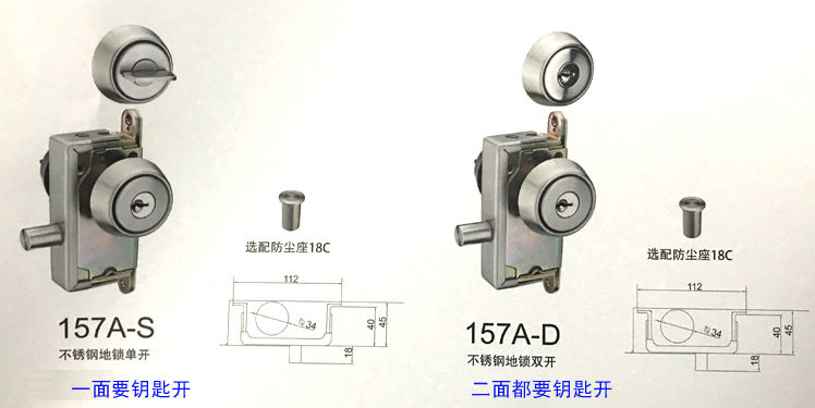 157A-S single-sided key open 3cm-5cm door thickness 157A-D double-sided key open 3cm-5cm door thickness 157A-S single-sided key open 5cm-7c