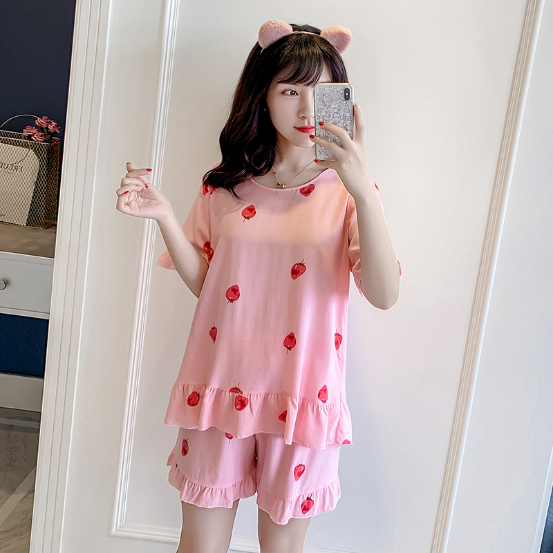 Round collar short sleeves shorts pink strawberry round collar short sleeves shorts rice white strawberry V collar short sleeve shorts pink watermelon V collar short sleeve shorts pink crown