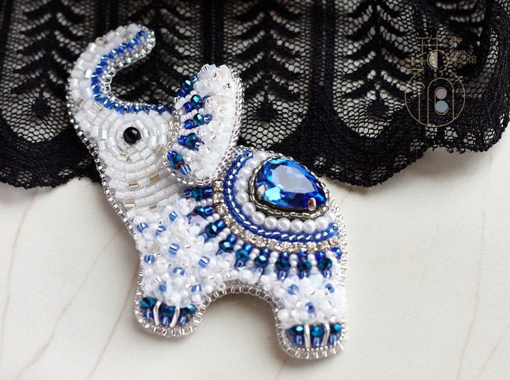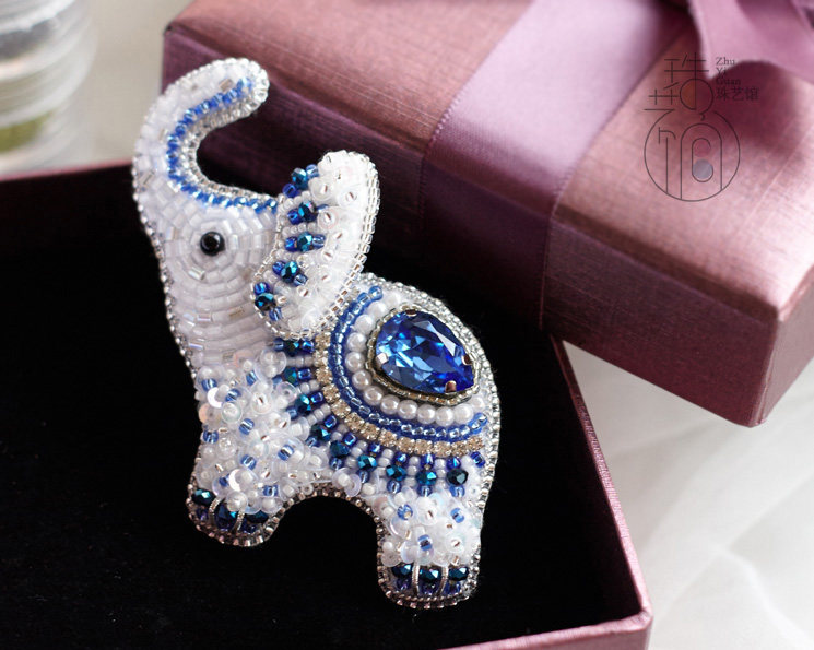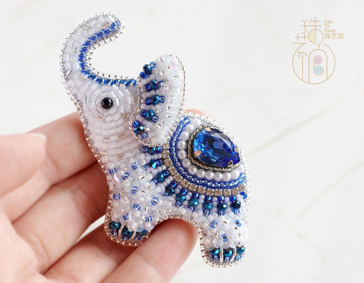 Pearl Art Museum original blue and white porcelain style "Little Han Elephant" three-dimensional embroidery French embroidery bead embroidery brooch material package