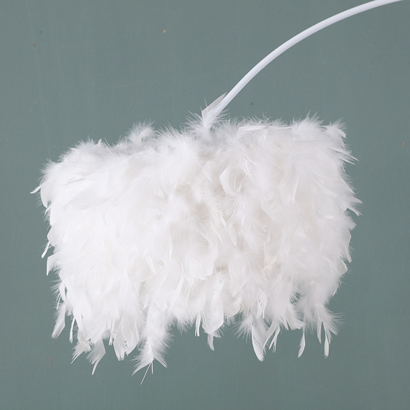 Black lamp body white feather lampshade send 10W warm light LED white lamp body feather lampshade remote control dimming bulb white lamp body feather lampshade 3 gear dimming bulb white lamp body