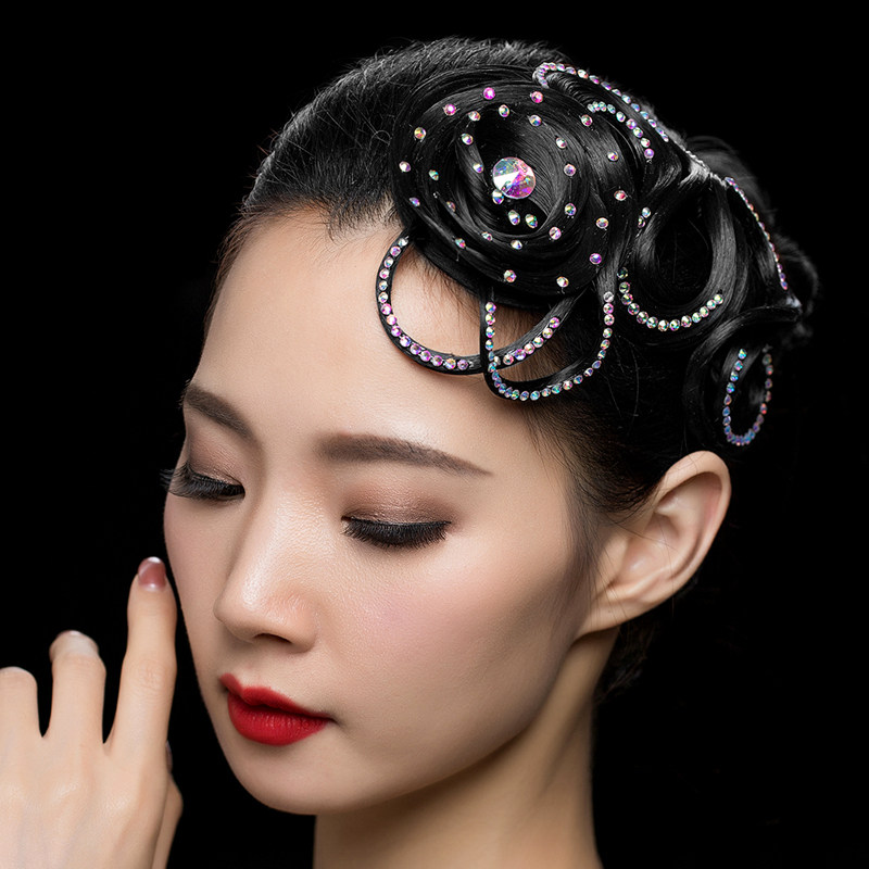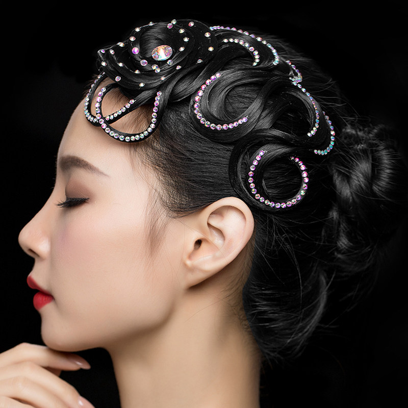 Latin Dance Headwear Inlaid Drilling Professional Black Pool Performance Wig Ksforhair National Mark Competition Hair Accessories Morden Headwear