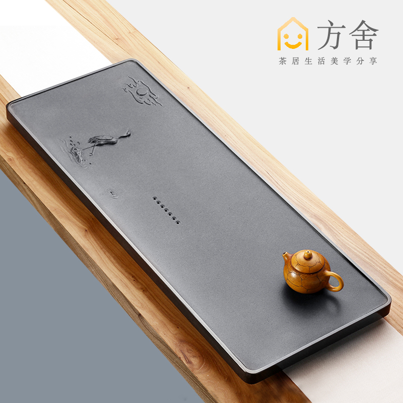 Fangshe Natural whole piece of black gold stone tea tray large household simple Chinese tea table hand-carved tea set