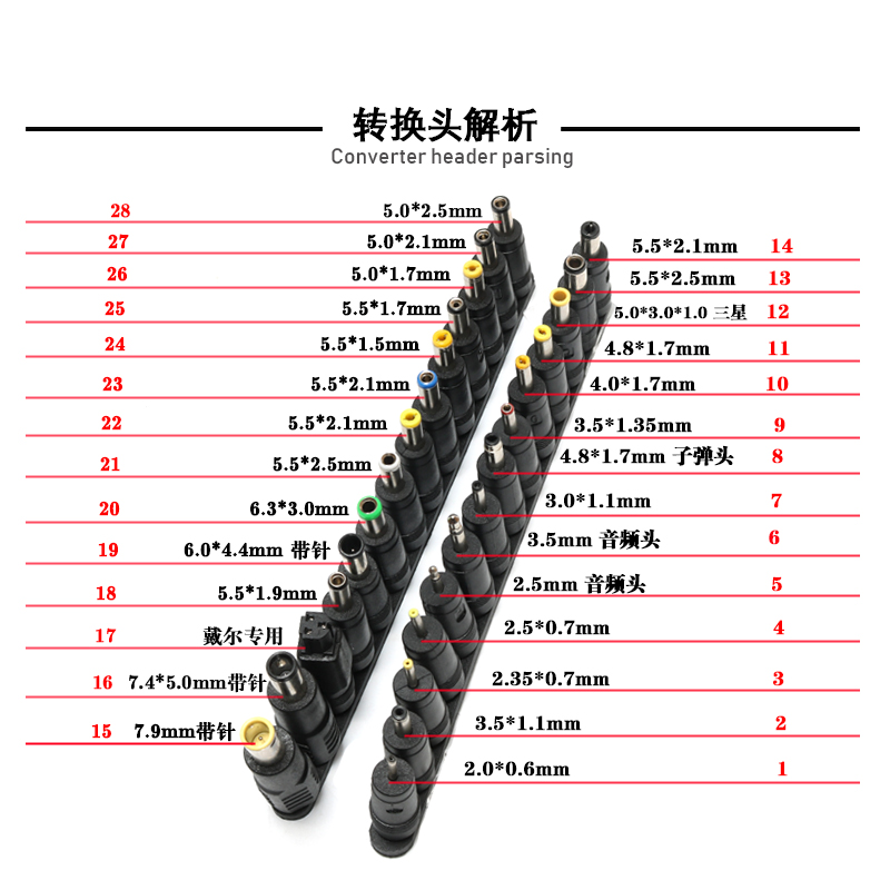 DC conversion head DC adapter 28 pieces of sleeve notebook computer power plug universal fit adapter