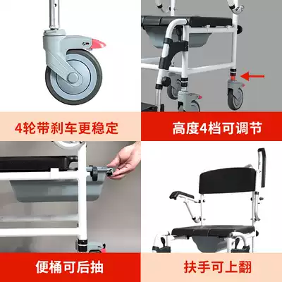 Yade old man wheeled toilet chair can take a bath for people with disabilities, toilet chair, foldable mobile wheelchair toilet