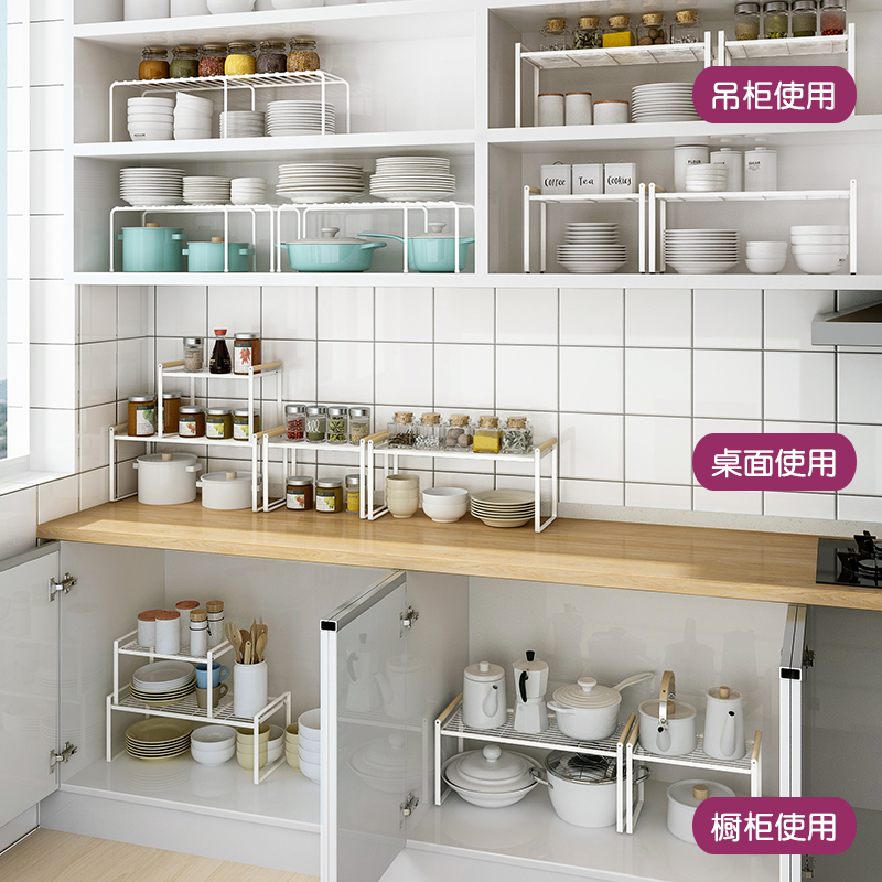 Kitchen tiered shelf countertop desktop seasoning storage overall cabinet compartment partition plate plate double pot shelf