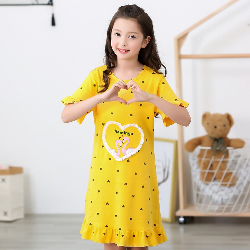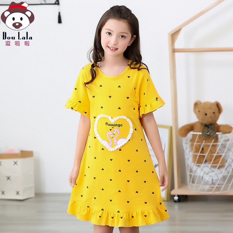 Girl Sleeping Dress Summer Thin short sleeves Pure cotton Children Pyjamas Little Girl Summer Princess Parent-child Air Conditioning Home