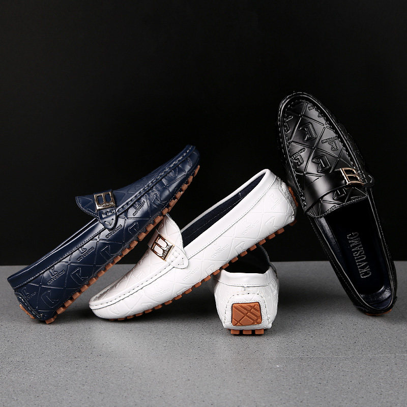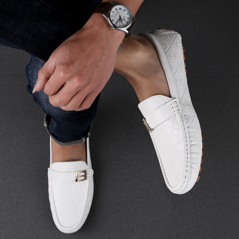 European station beanie shoes men's 2021 autumn new leather casual Korean version trend lazy shoes one-foot white leather shoes