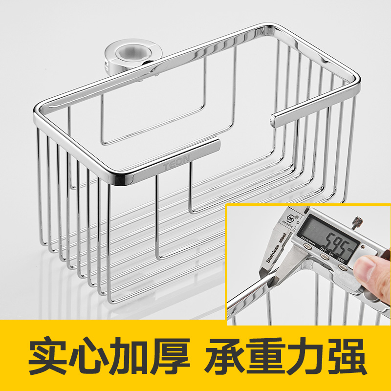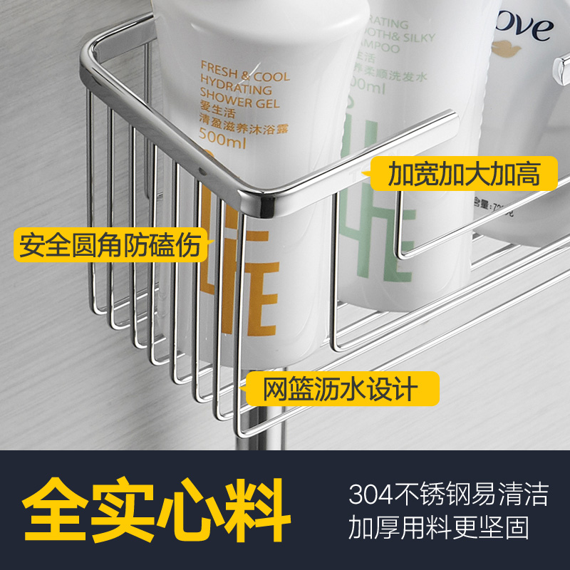 Shower shower rod storage basket lift rod storage rack free punch shower room tray 304 stainless steel mesh basket