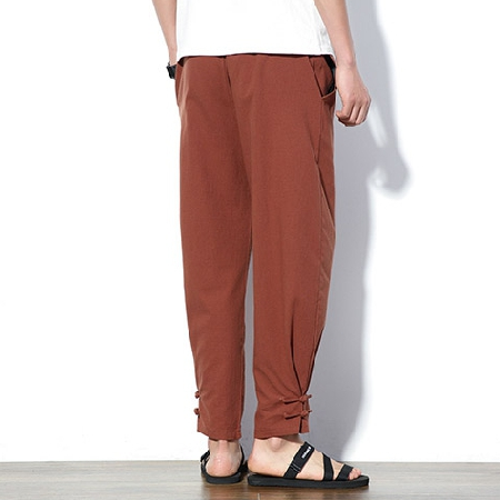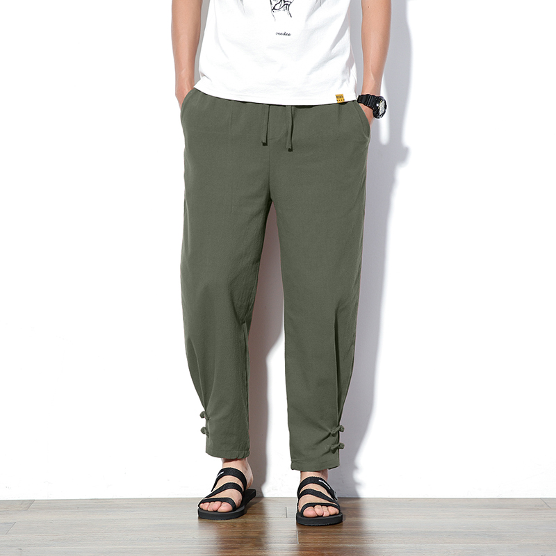 China Wind Men's Clothing Linen Retro Hanfu Kharen Pants Loose large size Chinese Chinatown Cotton Linen Light Cage Pants Summer