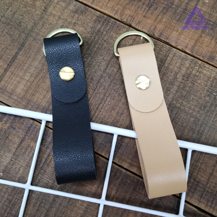 The leather button is decorated with a