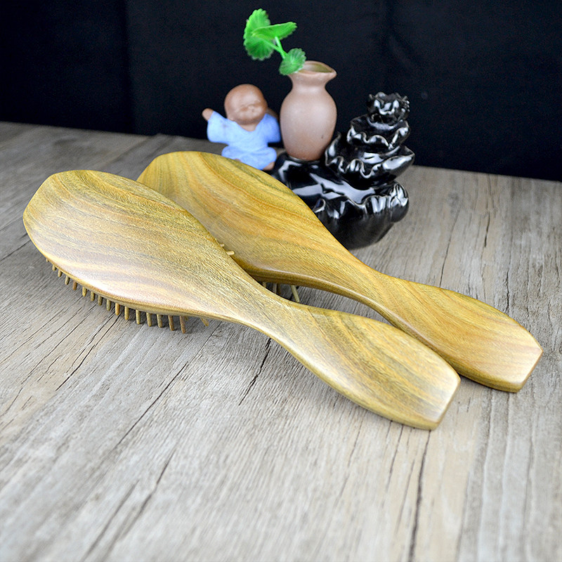 Large whole wood green sandalwood air cushion comb head meridian massage airbag comb anti-static large wood comb lettering