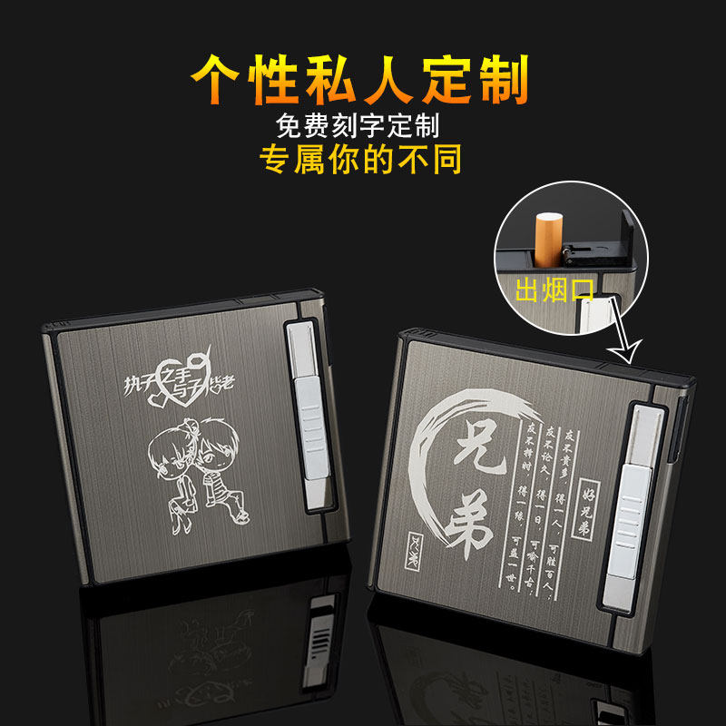 Cigarette case and lighter all-in-one 20 packs of creative personality trendy portable custom thin men's rechargeable automatic cigarette case