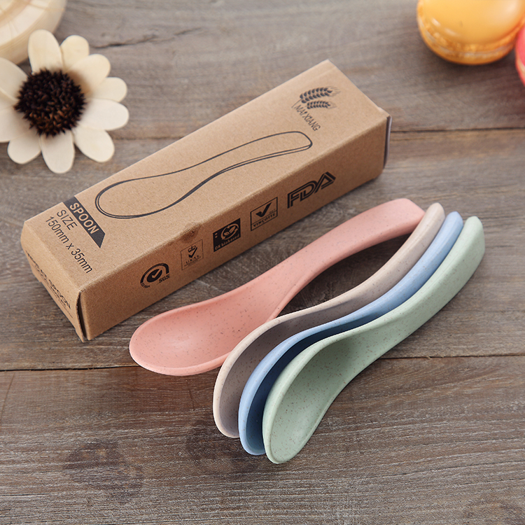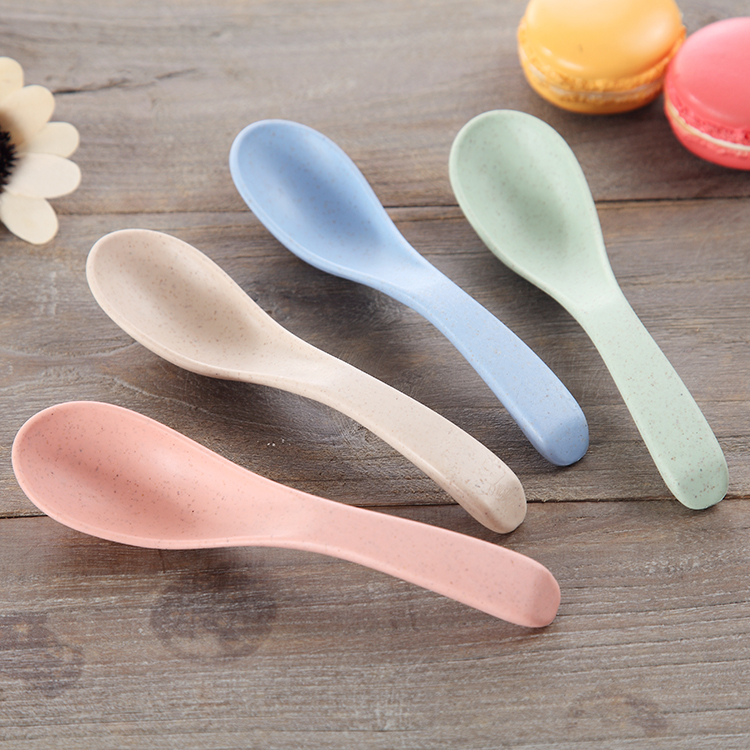 Porridge spoon Creative spoon Wheat box Children's cute student wheat straw spoon tableware 4 4-color set spoon