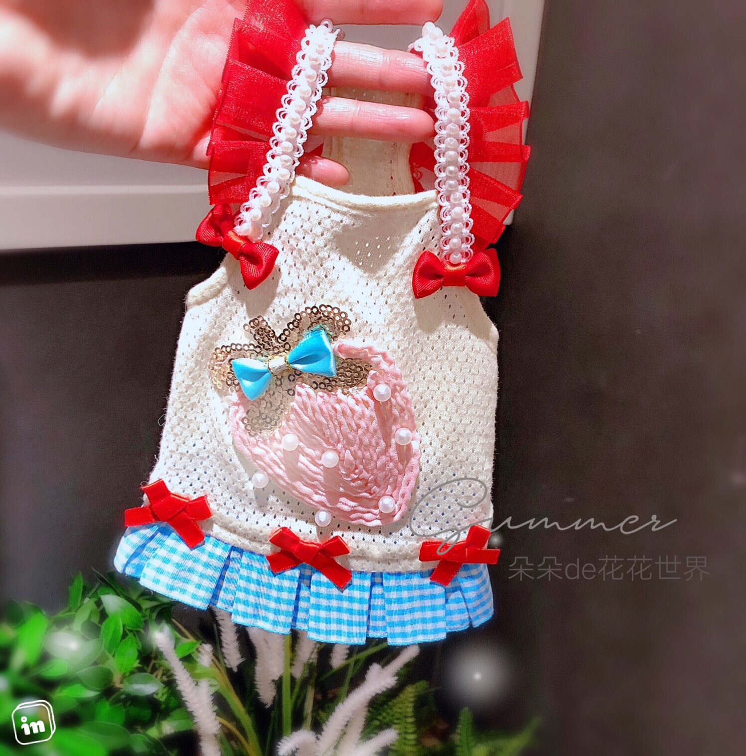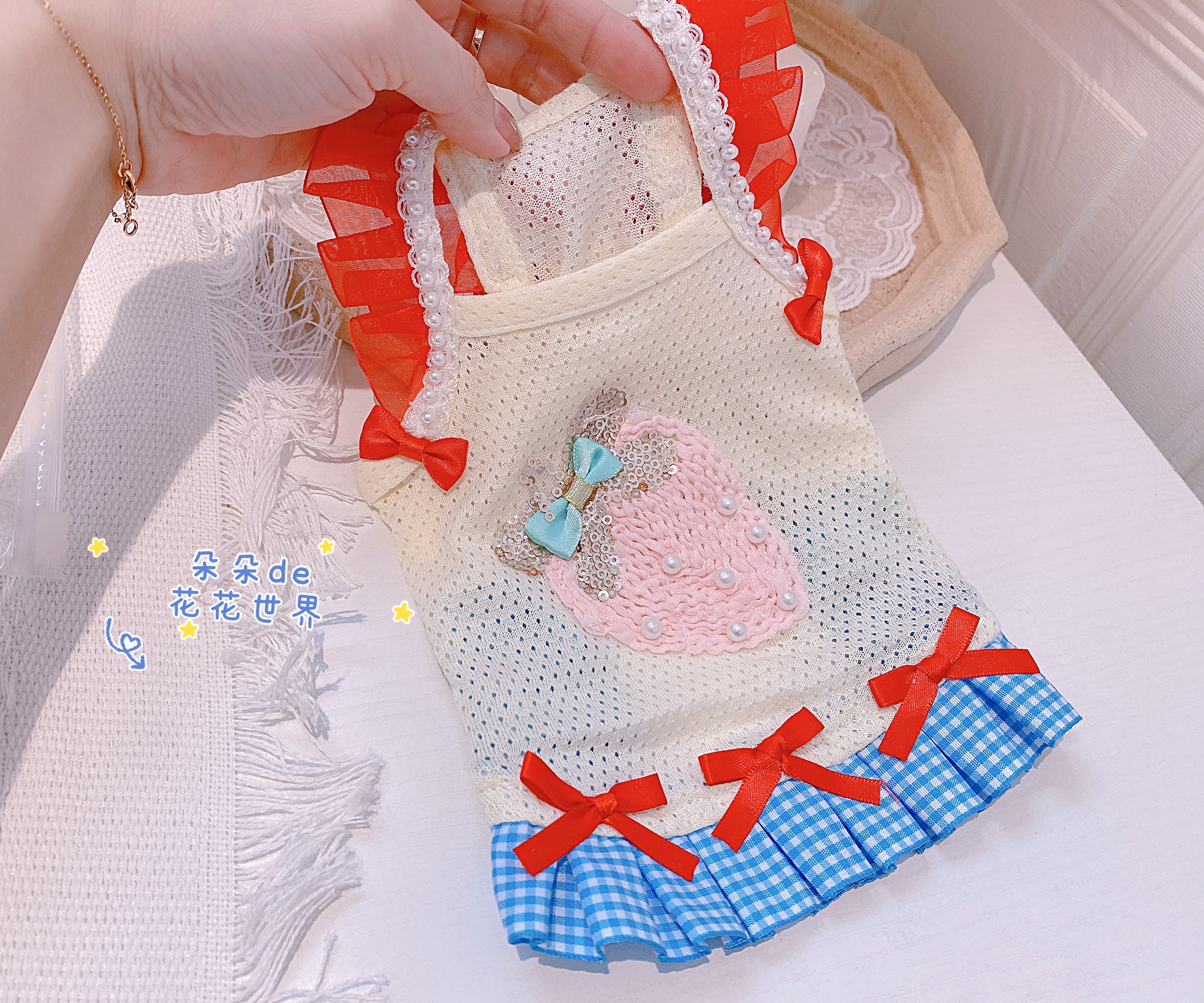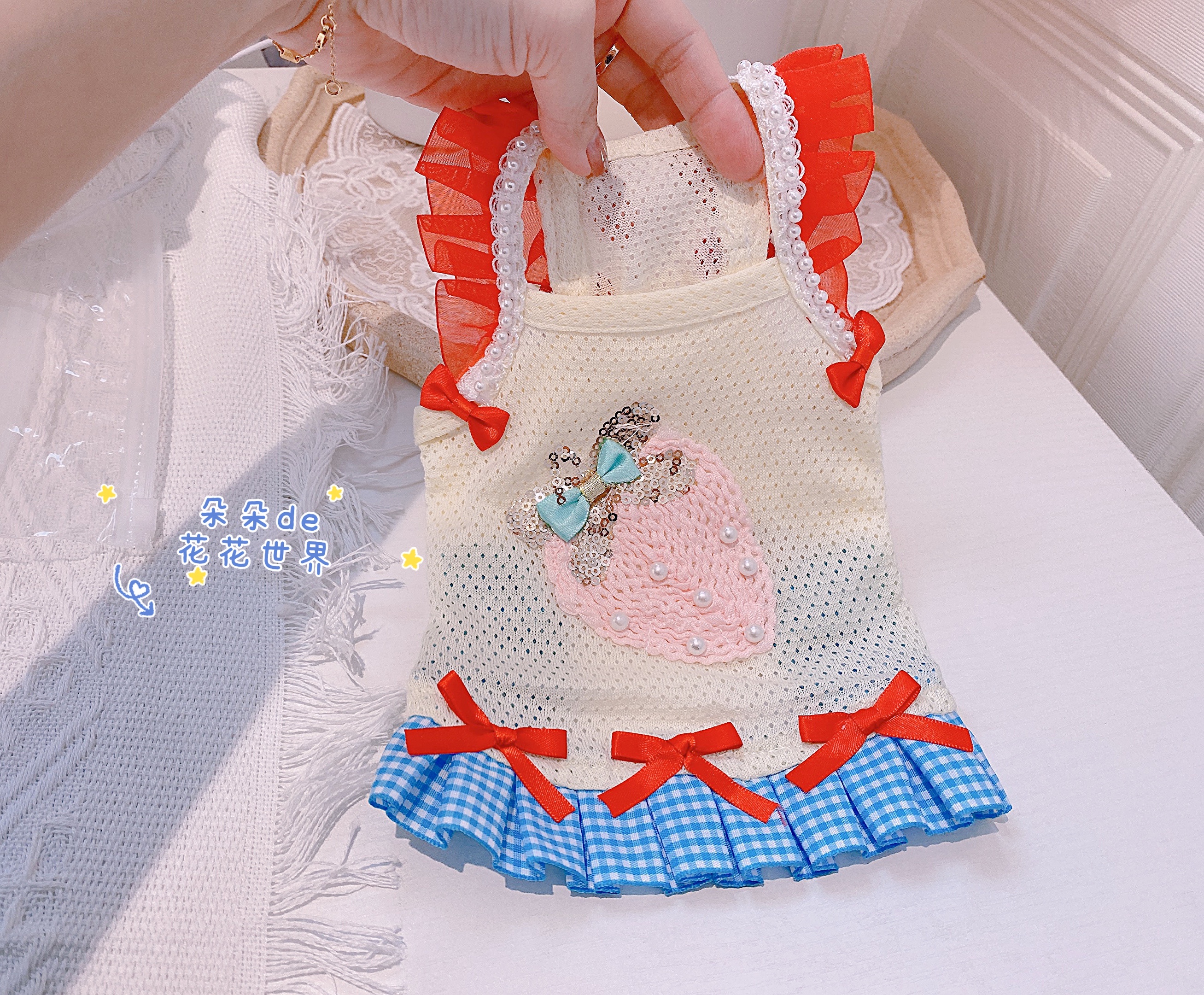 Pet cat and dog spring and summer new Yorkshire pony teddy small dog net red breathable suspender skirt clothes
