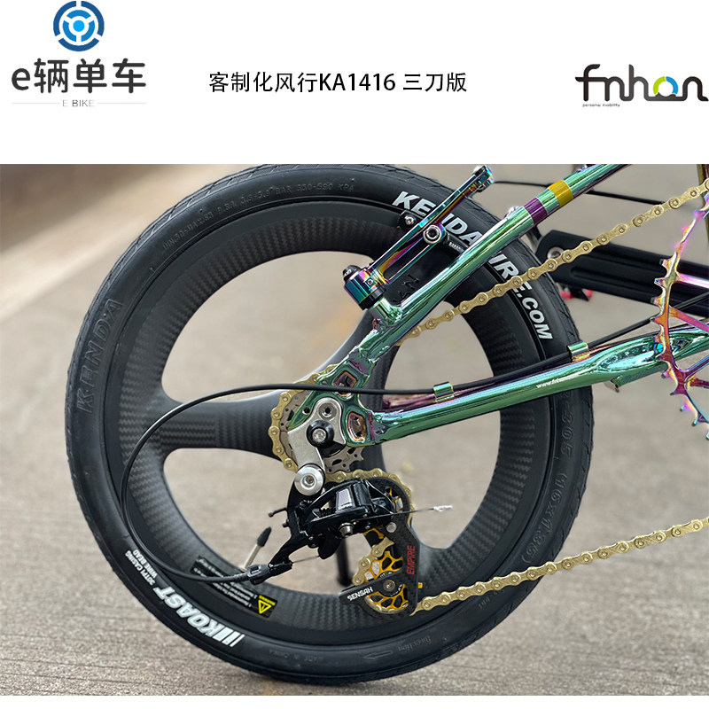 FNHONN Wind line carbon fiber three knives KA1416 aluminum alloy 14 inch 16 inch outer three speed folding bike