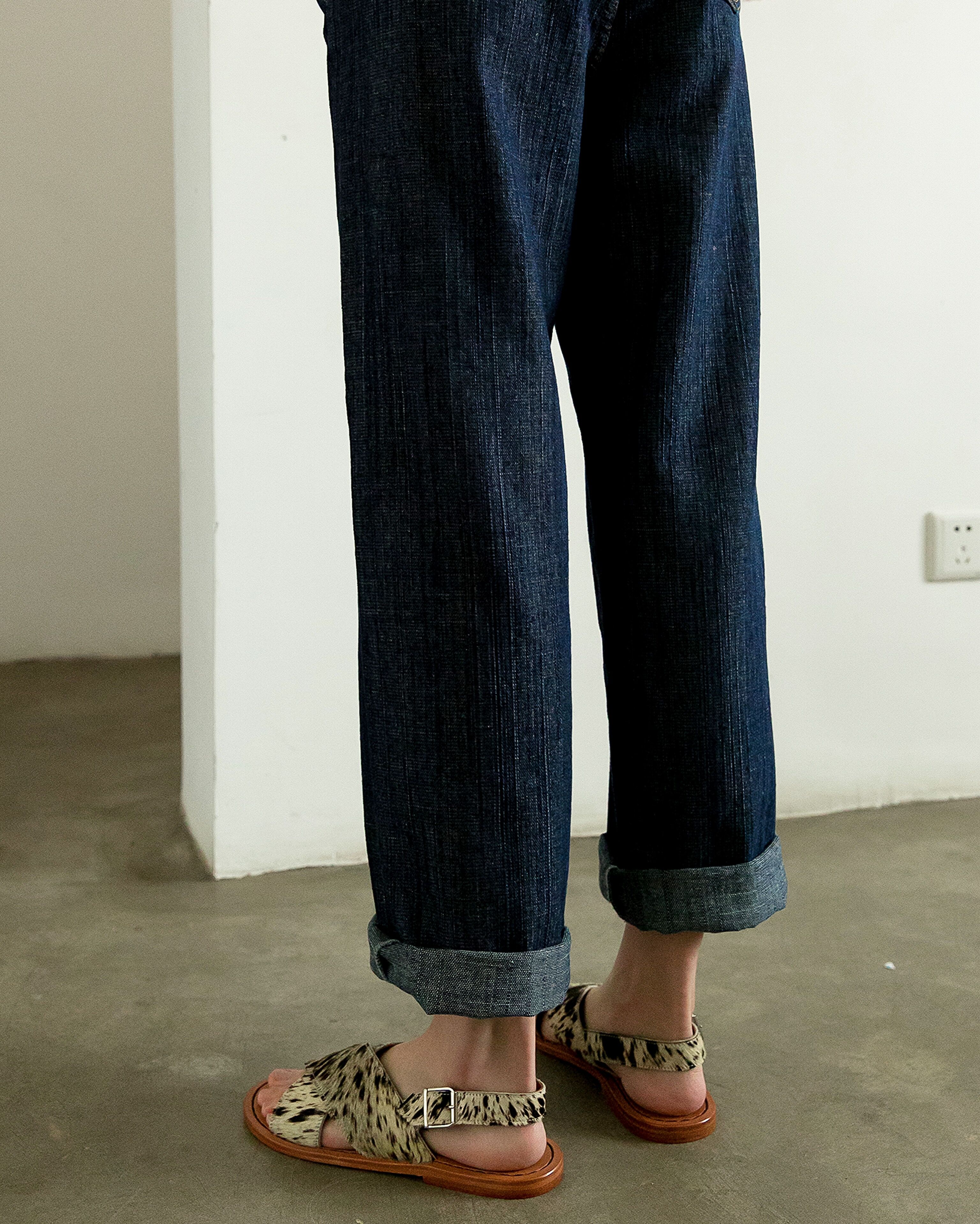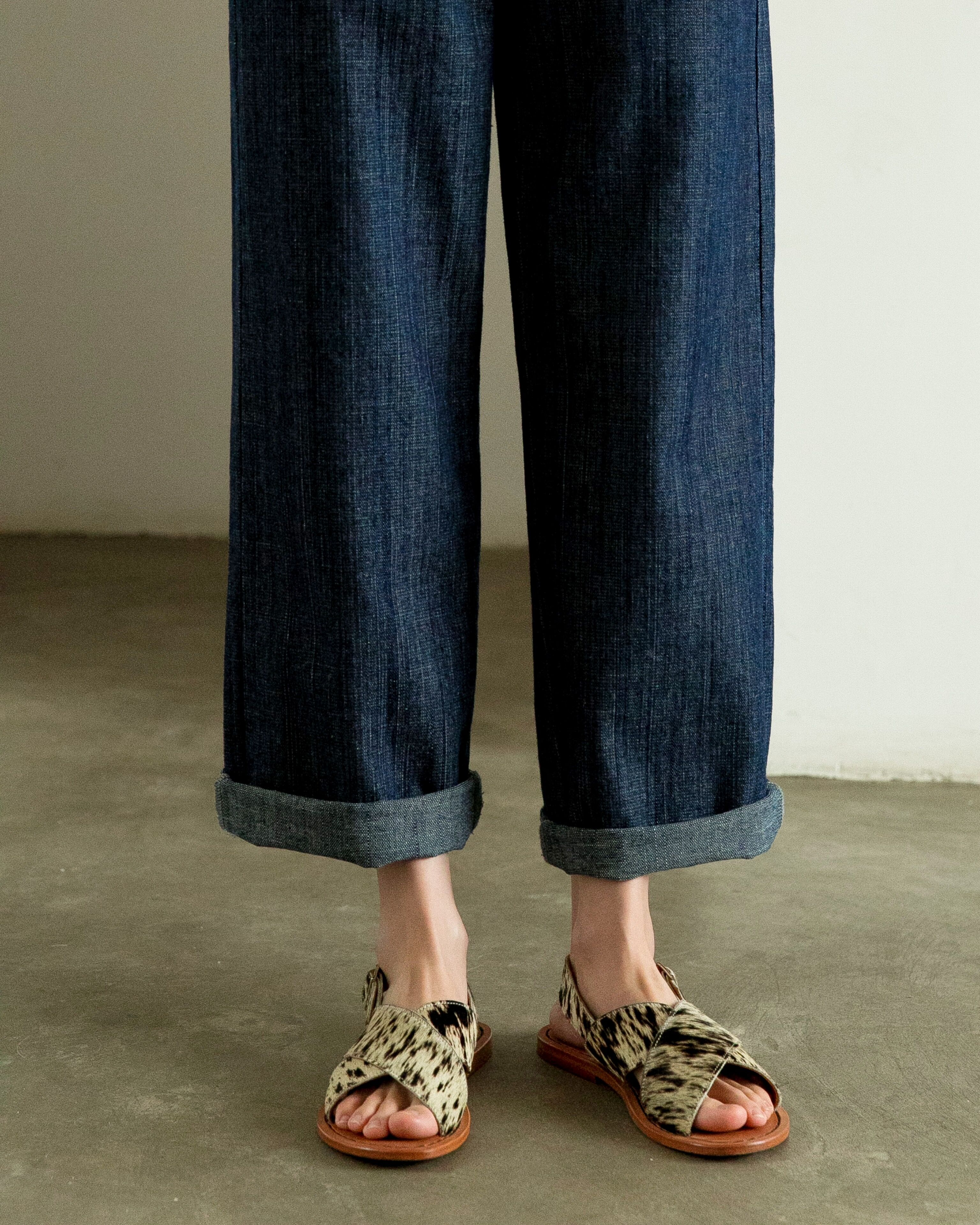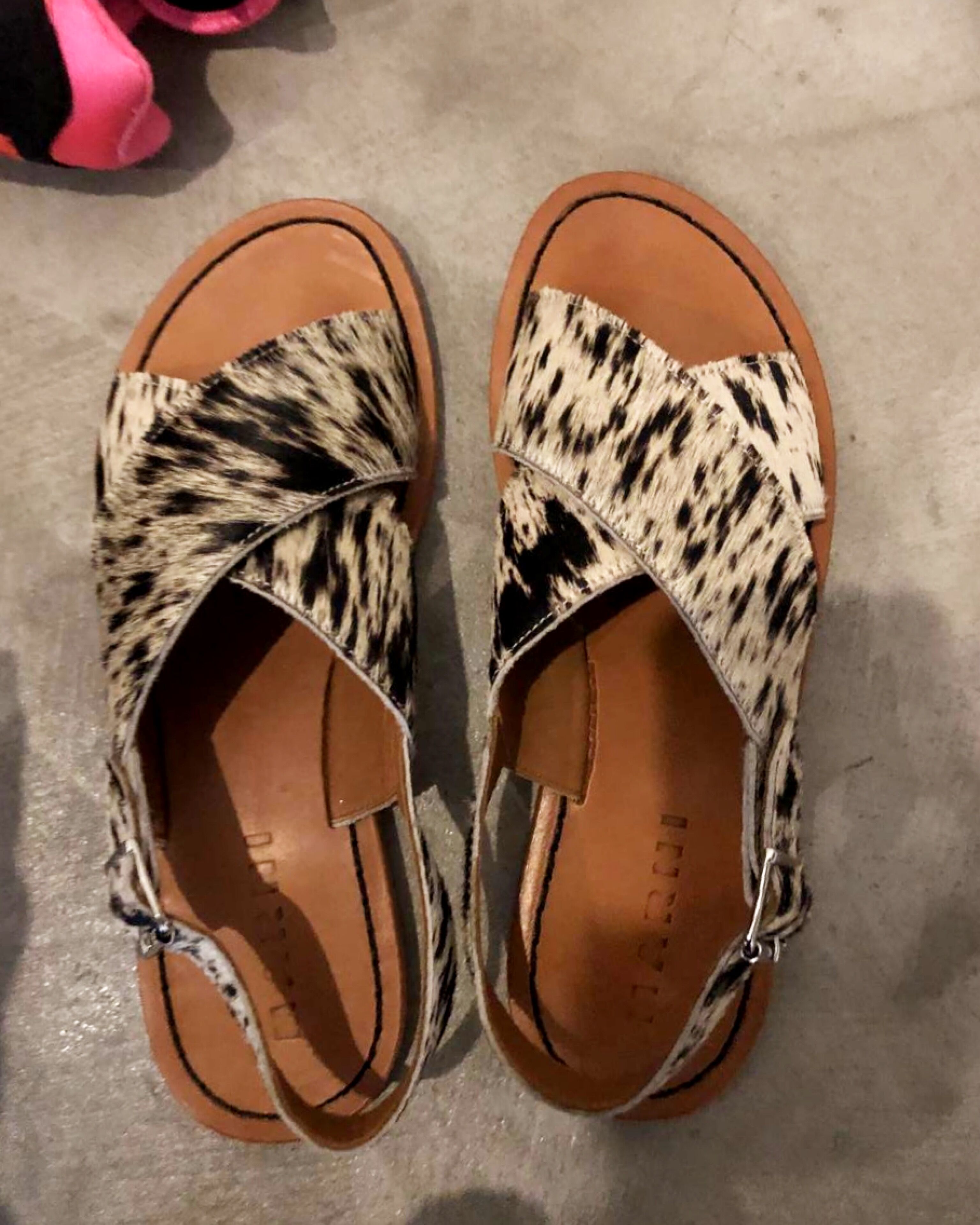 2019nana same style leather horsehair BAO WEN sandals women's cross strap flat sandals Roman casual Martin women's shoes