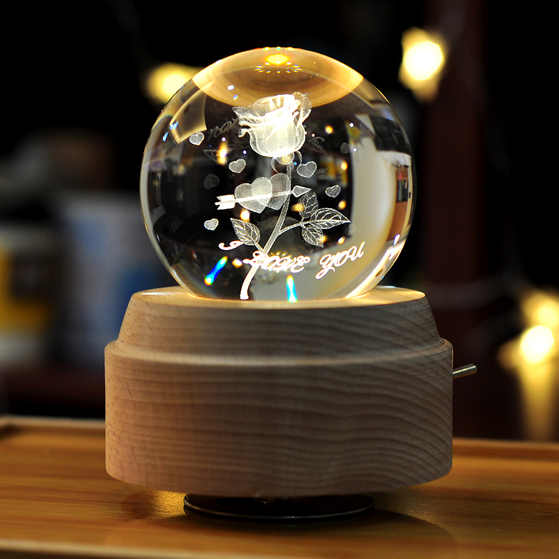 Rotating Luminous Water Crystal Ball Music Box Eight-tone Box Girl Girl Birthday Gift Photo Diy Customize Valentine's Day