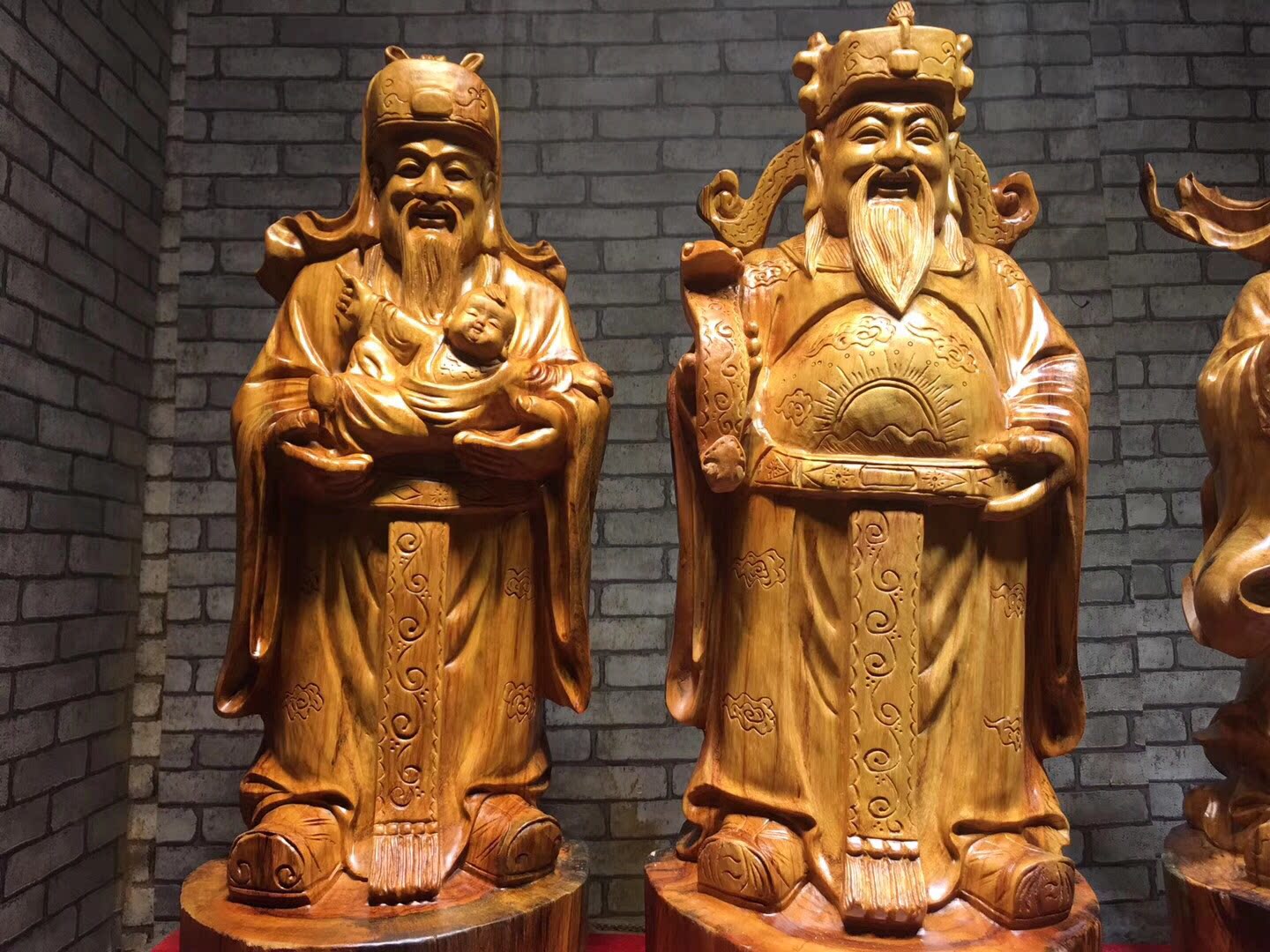 Root carving wood carving ornaments Fu Lu Shou Sanjixing rosewood three-dimensional carving material clean meaning good gift home