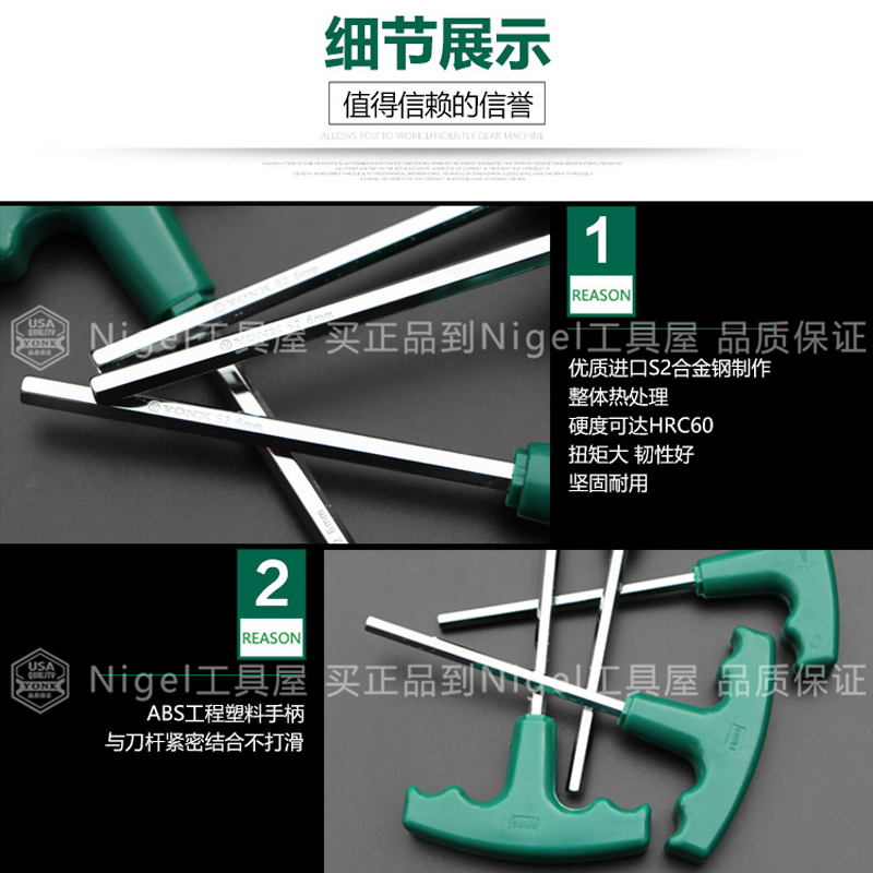 York T-shaped crutch type short handle flat head high strength inner hexagonal wrench single bright chrome inner hexagonal wrench