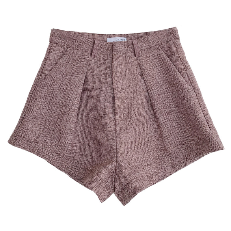 (LAMBO exclusive) 3 m legs long and small bird legs linen Hemp Solid Arc High Waist Display Slim Shorts