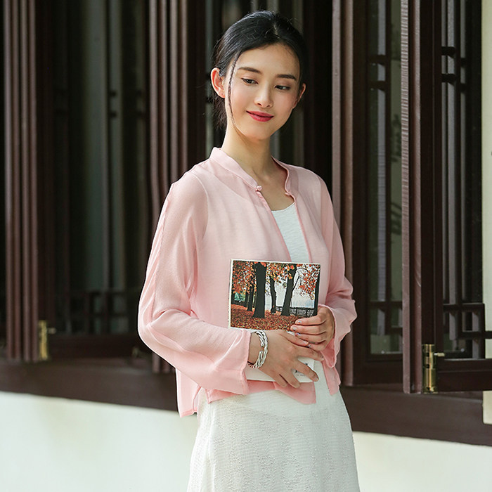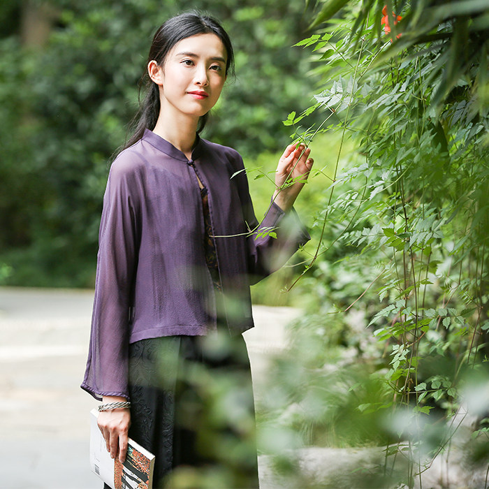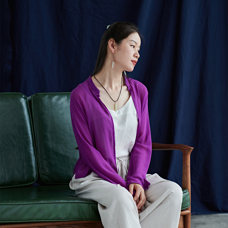 (Old window front wind) mulberry silk lightweight breathable sunscreen shirt women summer wear silk top air conditioning cardigan
