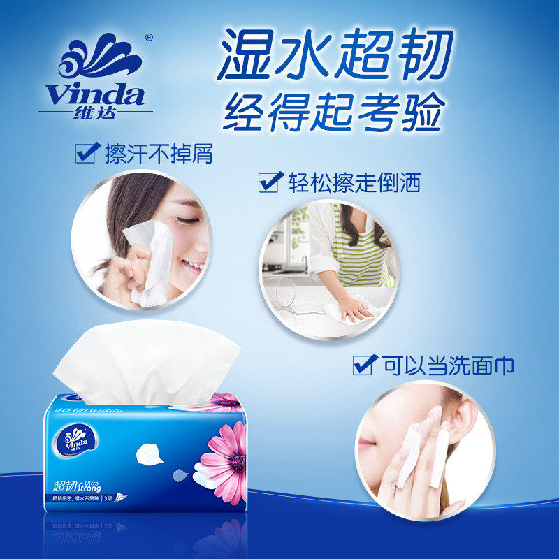 Vinda paper 3 to 9 packaging M code super tough 3-layer paper towel 153mm*195mm wood non-fragrant napkin Facial tissue