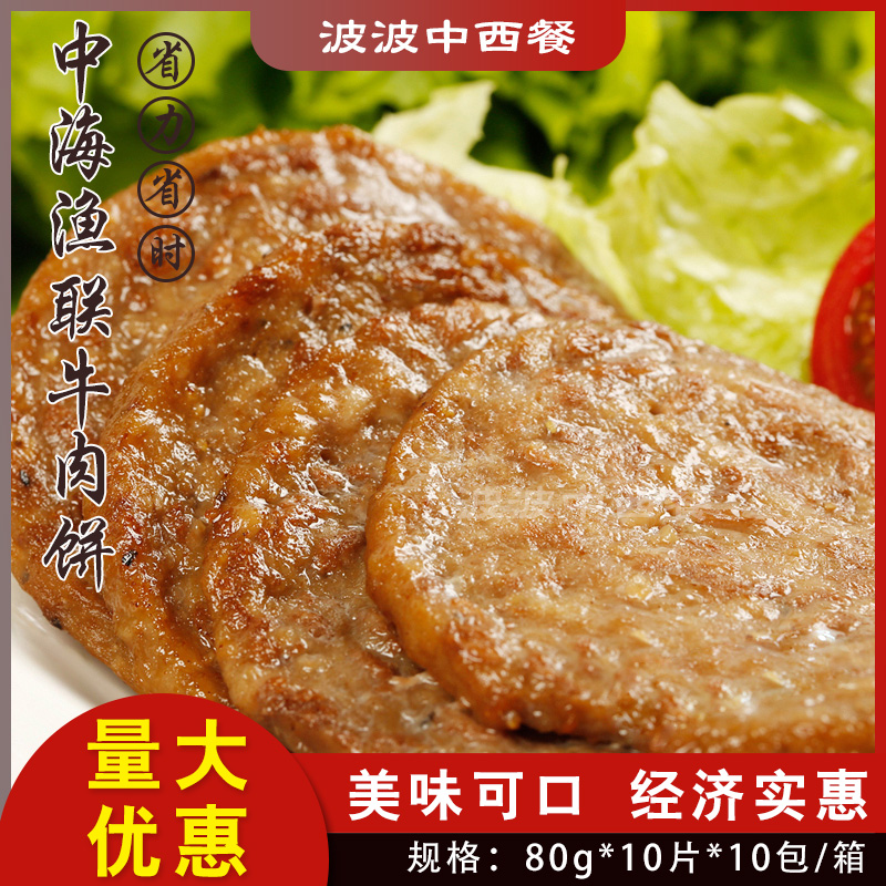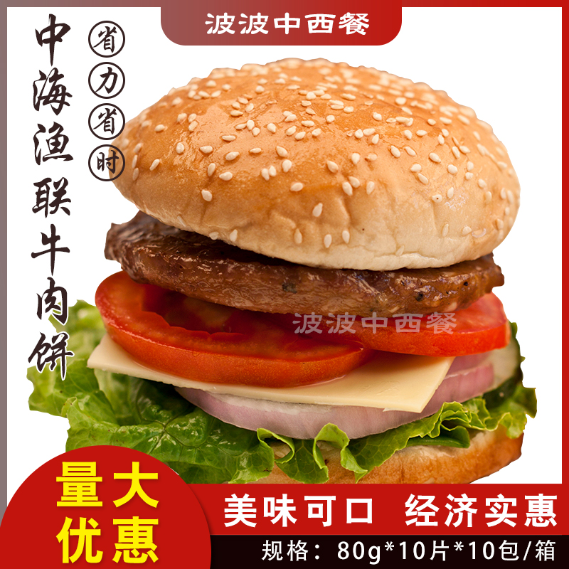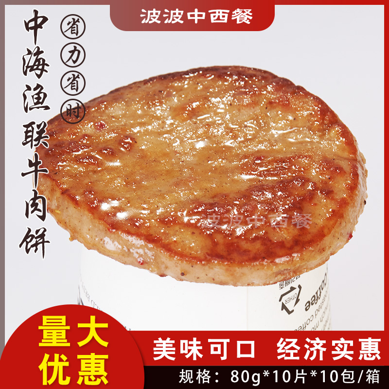 Zhonghai Fishing Union beef patty burger patty 80g*100 pieces frozen semi-finished products commercial whole box of burger meat