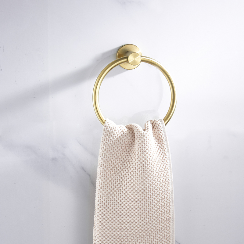 304 stainless steel brushed gold towel ring Nordic round towel ring rack hand towel hanging ring rack free of punching