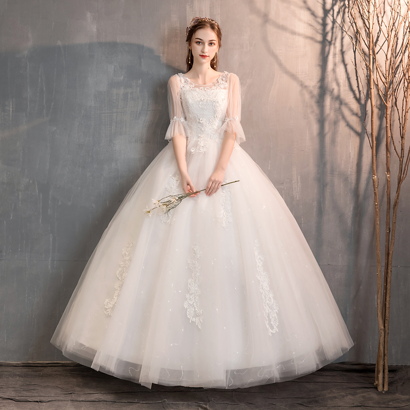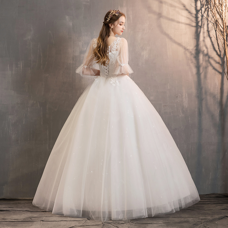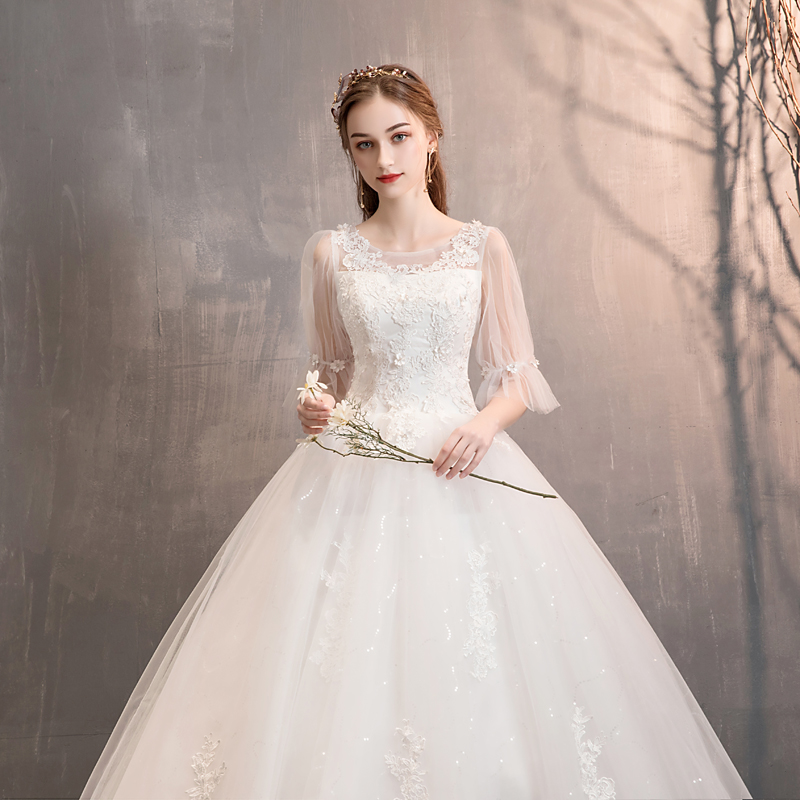 Main wedding dresses 2023 new sensuo brides marry Jane about Hepburn I have a shoulder long yarn sleeves Thin Zodie Woman-Taobao