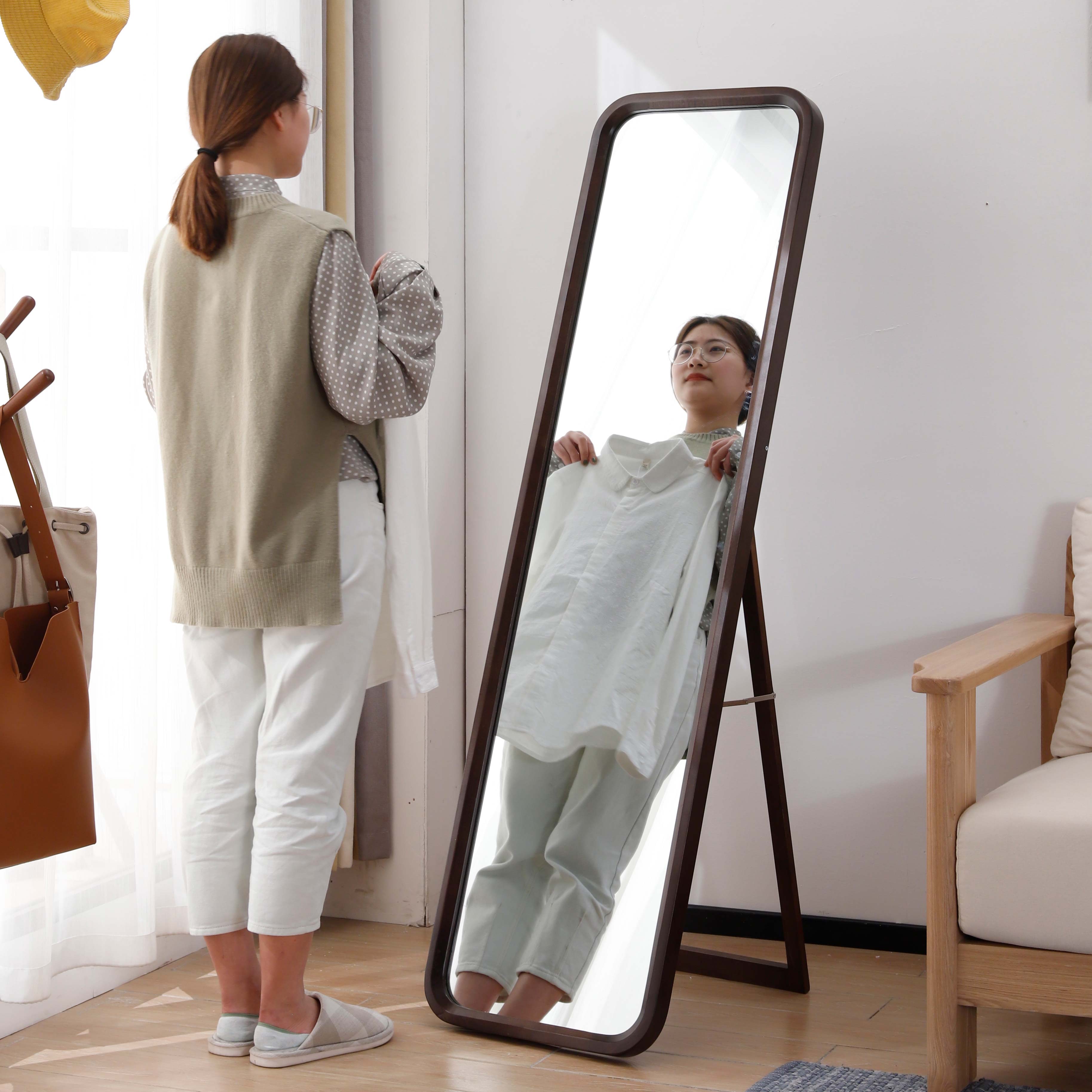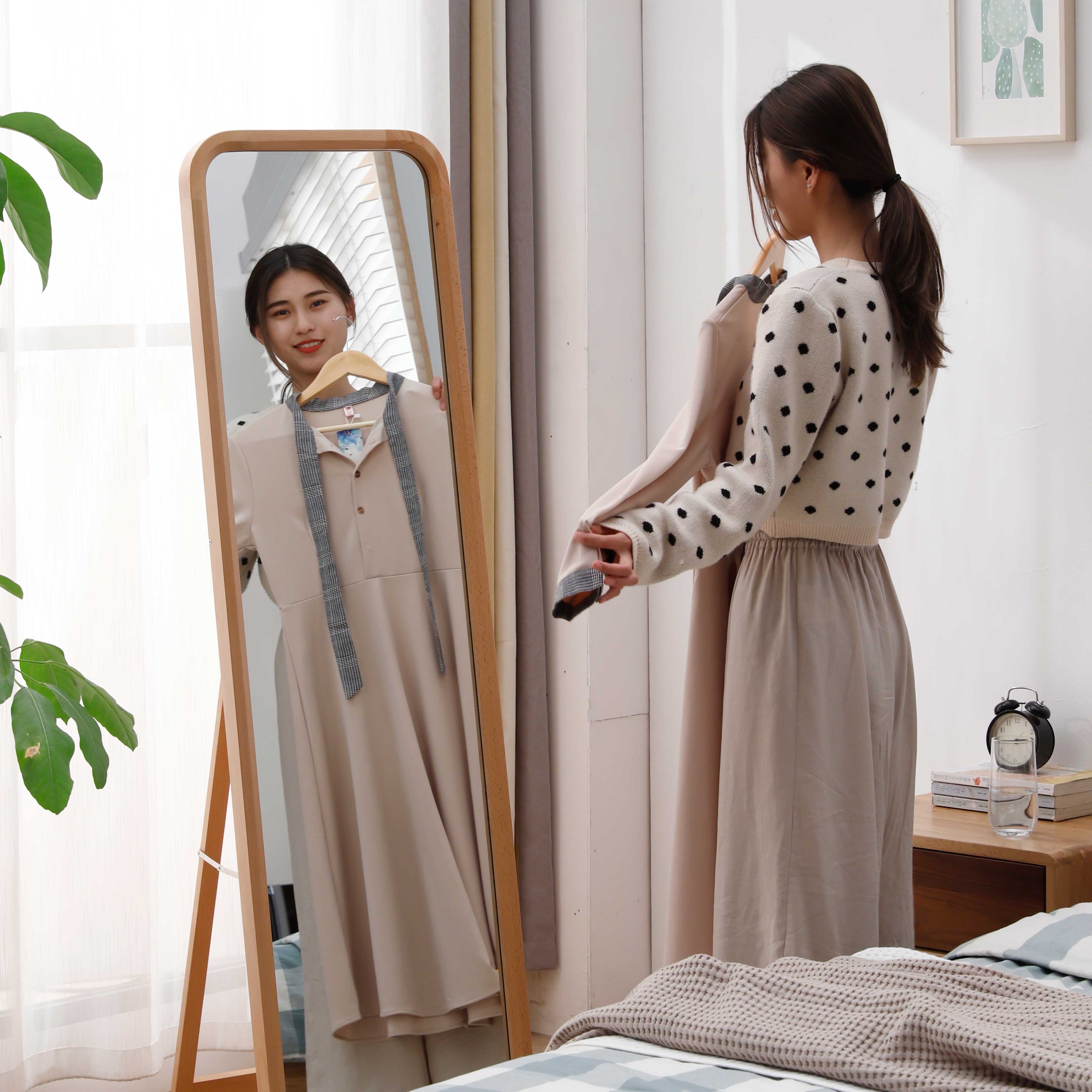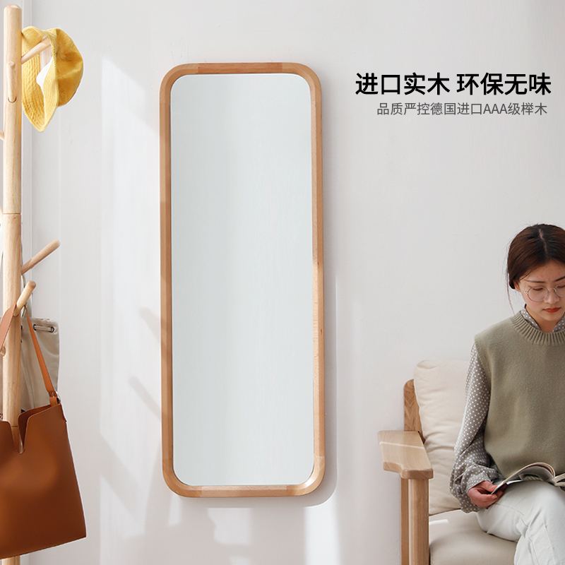 Nordic solid wood full-length mirror Floor-to-ceiling mirror Vertical full-length mirror Wall-mounted bedroom stereo full-length mirror Wall-mounted mirror Household