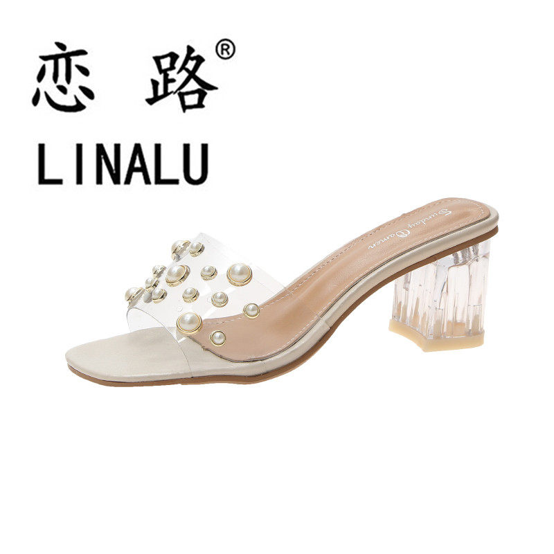 Sandals women wear in tide 2023 new fashion and high heel rough heel red crystal slippers