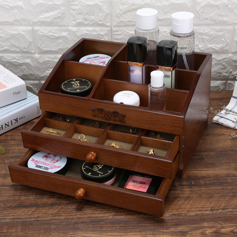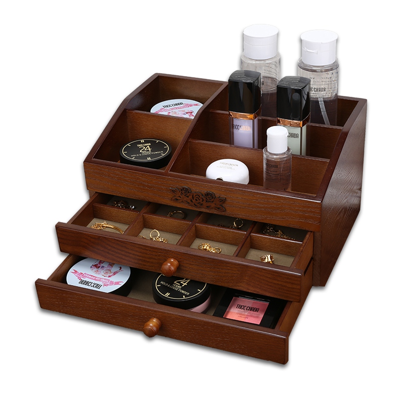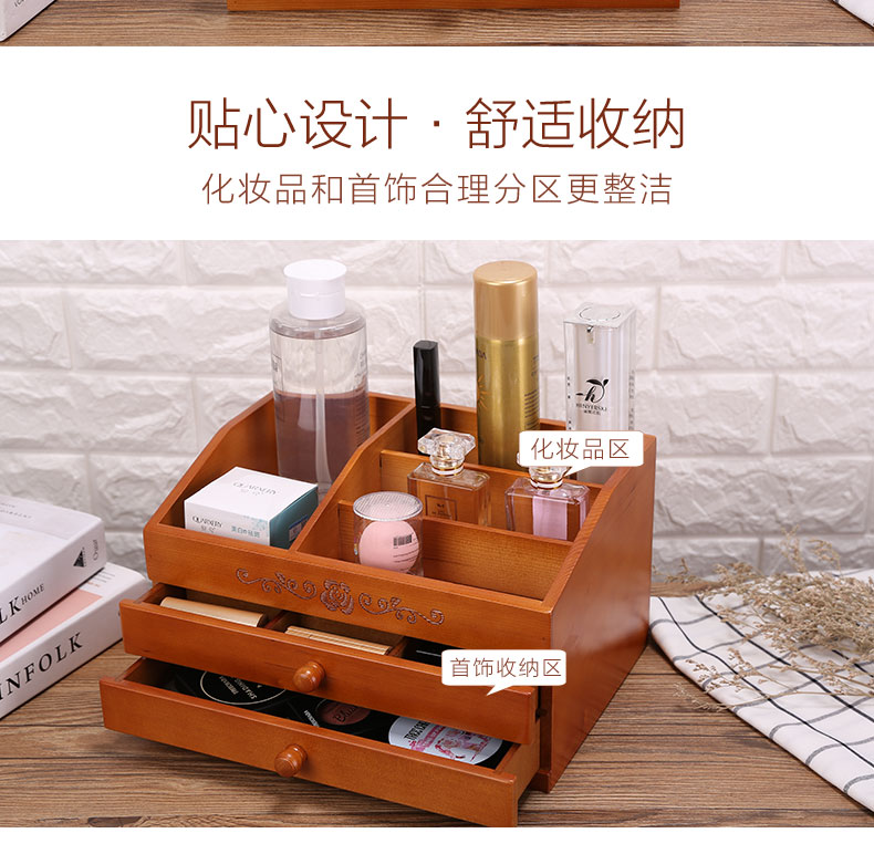 Versatile wood dressing case First accessories box solid wood Cosmetic Containing box drawer Desktop finishing dresser