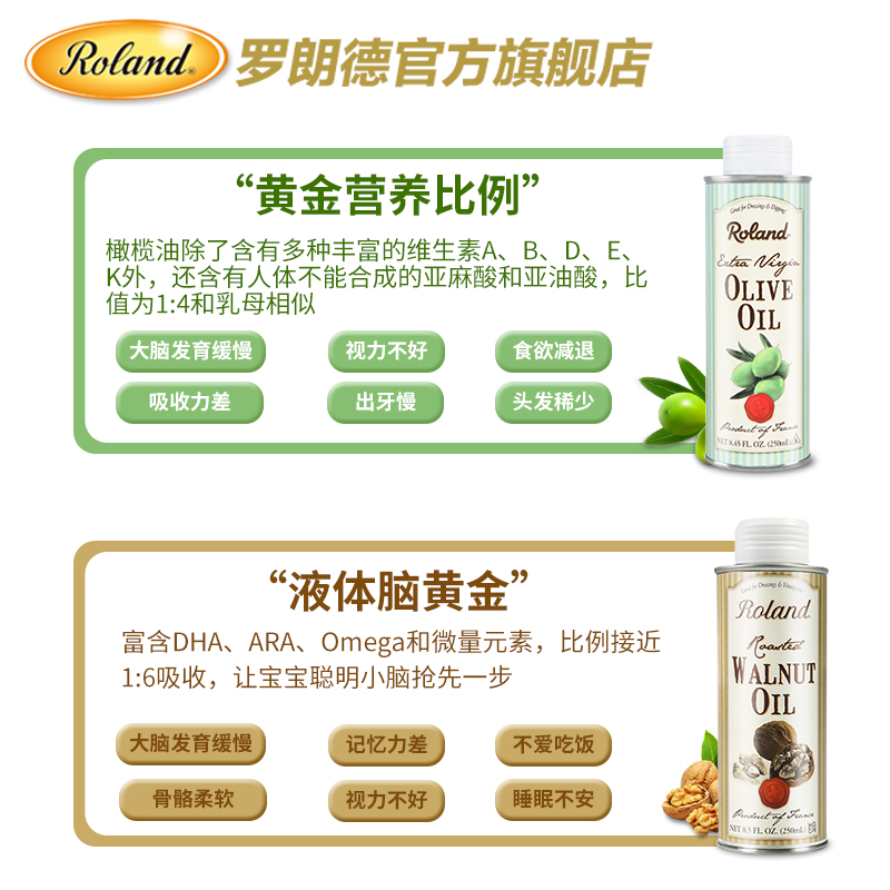French Rolande baby virgin walnut oil olive oil combination infant non-staple food added oil children eat