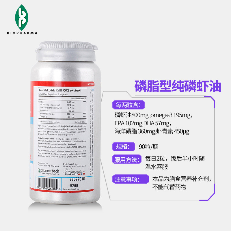 BP Norway Deep Sea Purification Natural Shrimp Green Vegetarian Biophharma Capsule Antarctic Pure Krill Oil Phospholipid Type 90 Grain